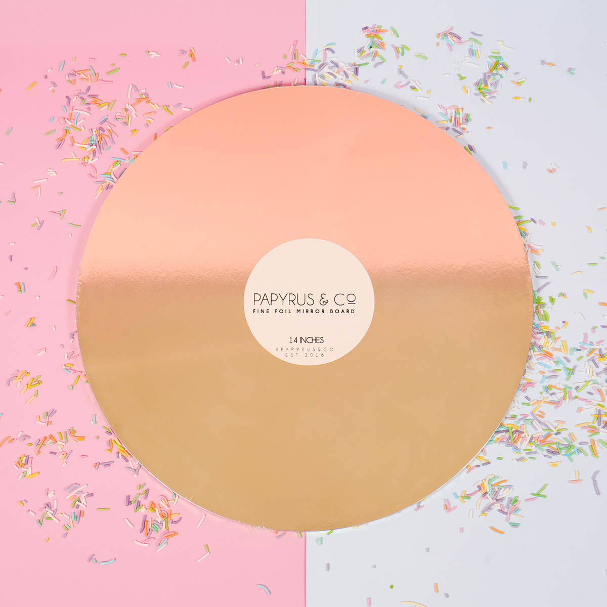 High quality fine foil covered Masonite MIRROR Cake Board are now available from Papyrus.